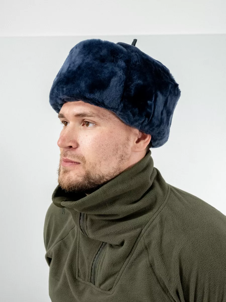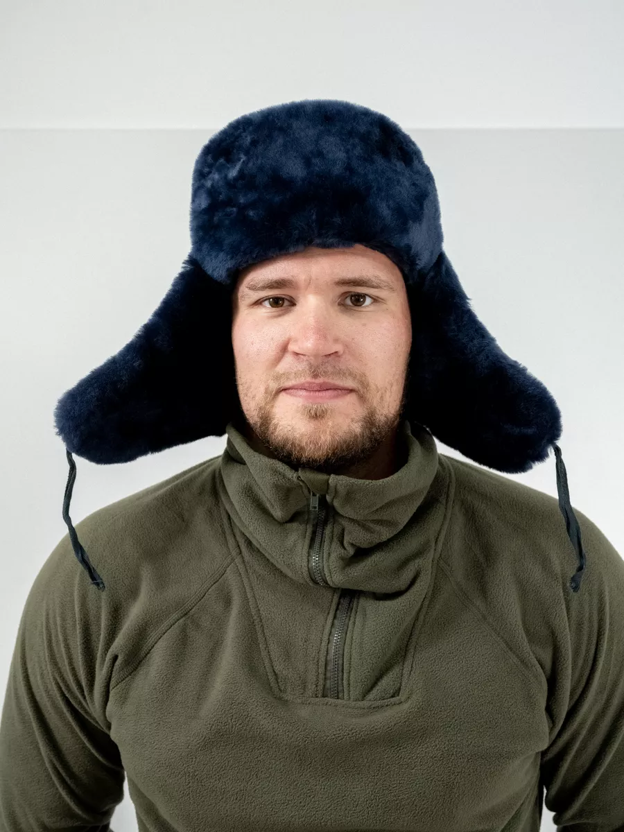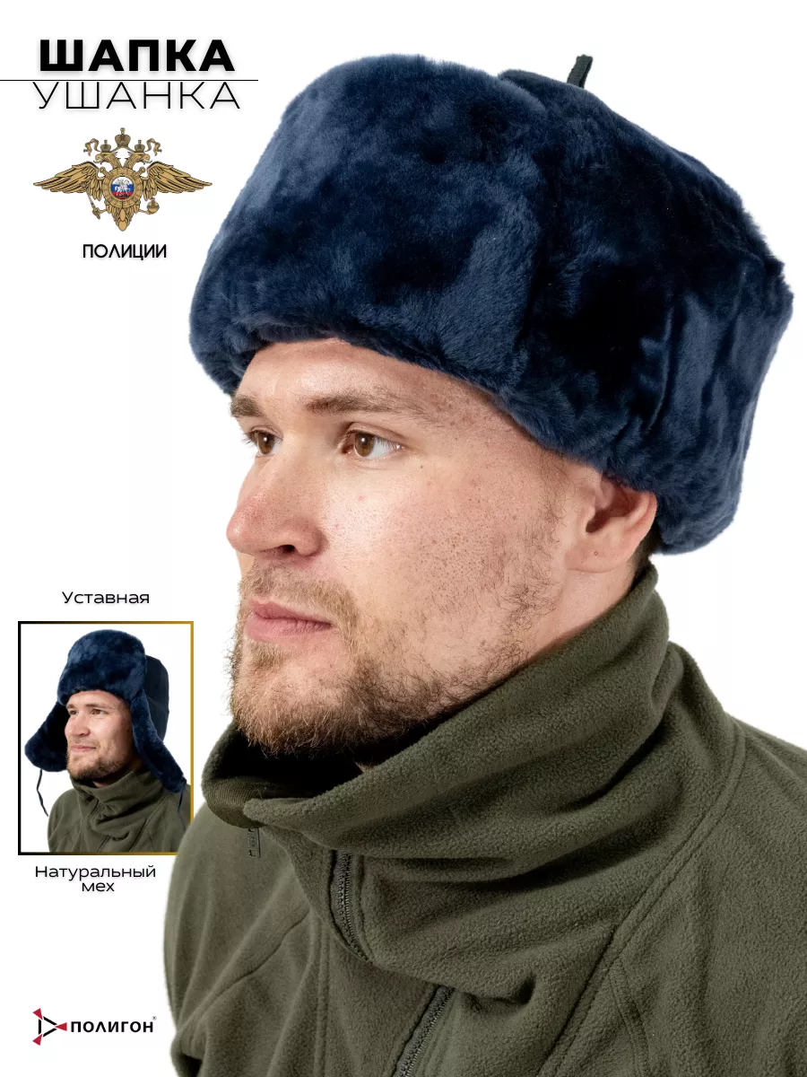 Шапка-ушанка Полиция, синий, овчина - интернет магазин Полигон