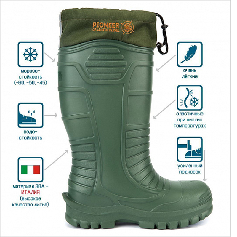 Конструкция верха изготавливается с использованием морозостойкого материала ЭВА, который обладает хорошими теплоизоляционными свойствами.