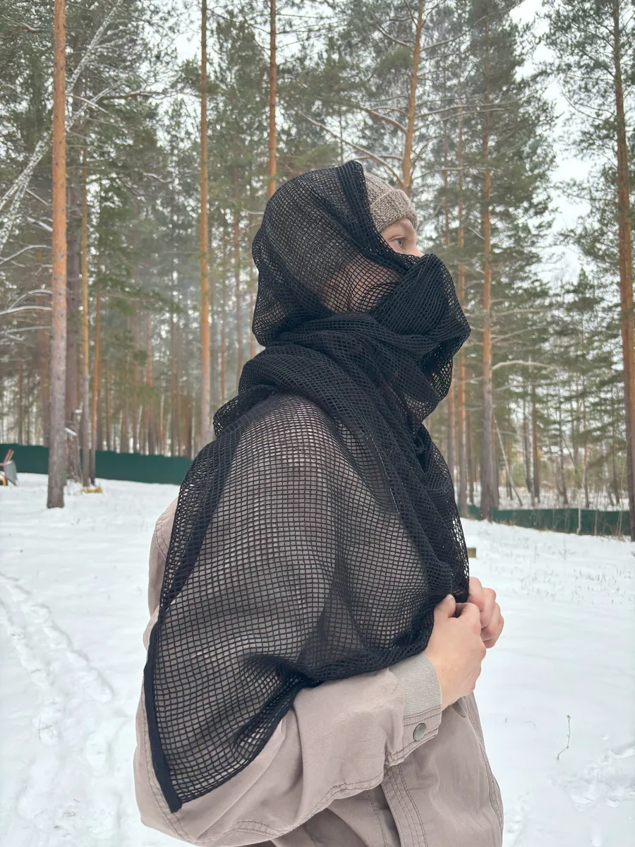 Шарф-сетка тактический, шарф камуфляжный послужит хорошей маскировкой себе, на оружие или снаряжению. Подойдет при необходимости вместо веревки или жгута. Прозрачная сетка или мужской шарф, шарф сетчатый снайпера применяется военнослужащими специальных подразделений, охотниками, рыболовами, туристами и экстремалами. Шарф применяется как противомоскитное укрытие и маскировочная накидка на голову стрелка. Сетка камуфляжная (черный шарф) изготовлены из очень прочных материалов, которые обеспечивают более высокую долговечность и повышенную устойчивость.