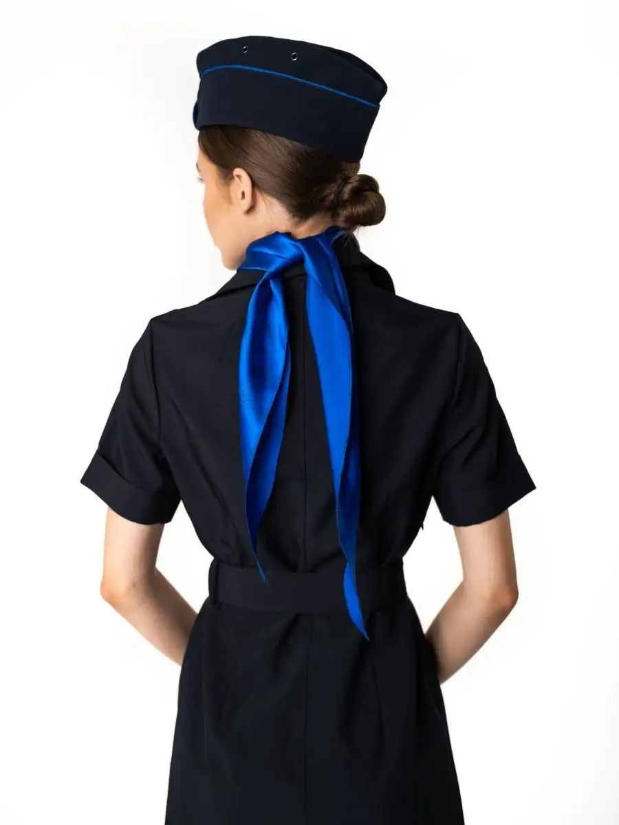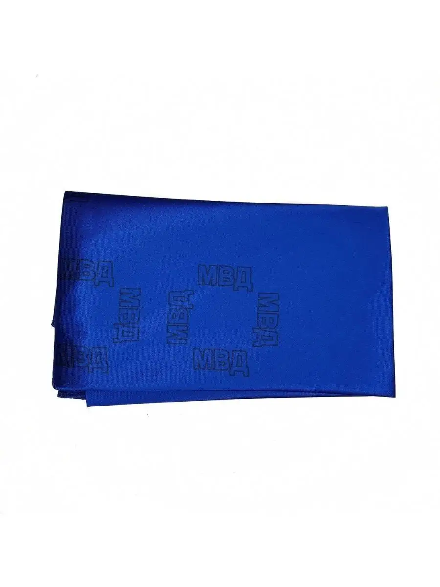 Женский атласный платок Юстиции на шею в виде треугольной косынки для сотрудников ОВД. Материал: креп-сатин. Внешняя сторона - гладкая атласная, изнанка - матовая. Края косынки обработаны оверлоком. По всей косынке, кроме центральной части, нанесена надпись "МВД". Предназначена для ношения с платьем Полиции. Длина 140см, ширина 35см.