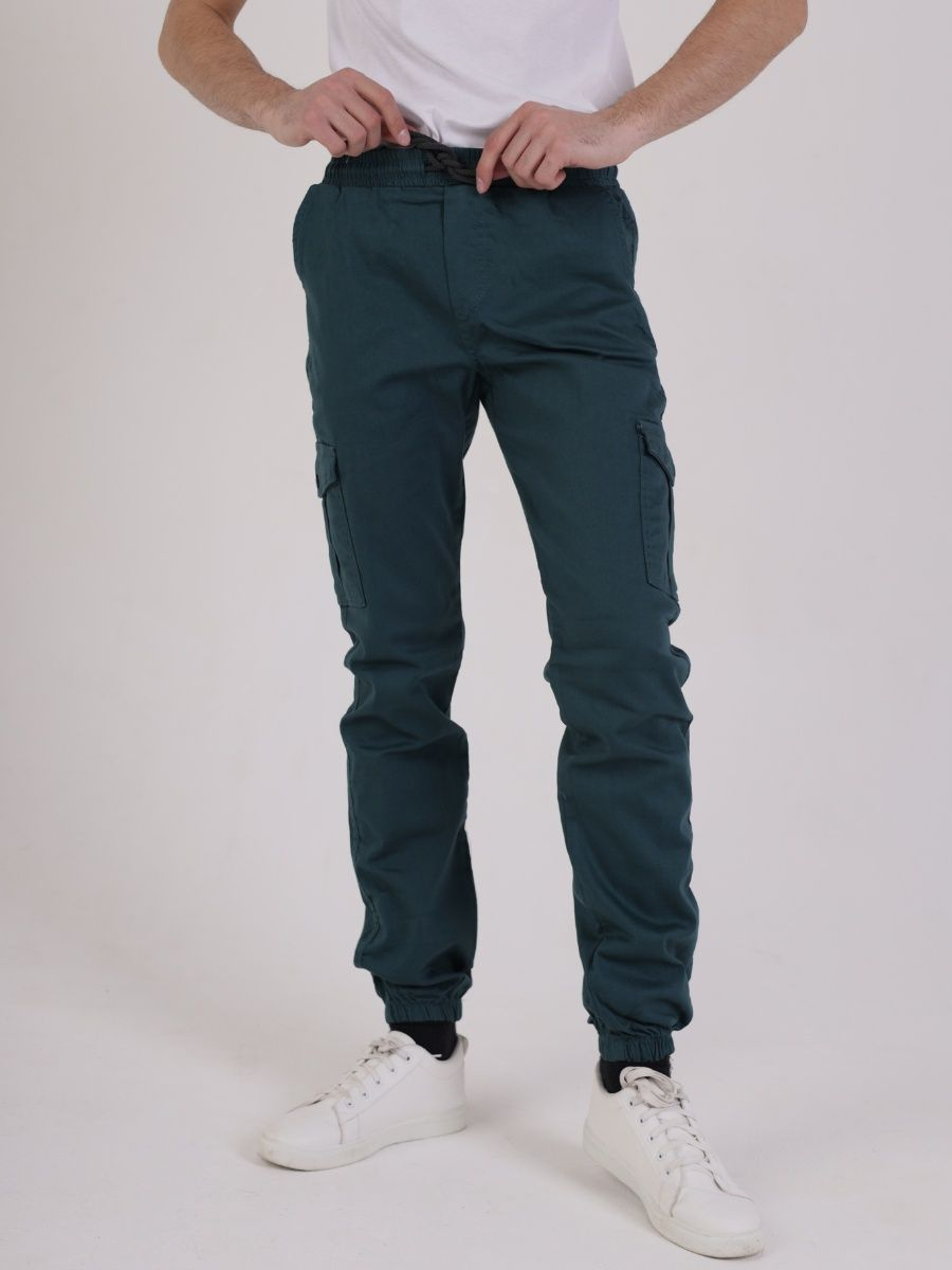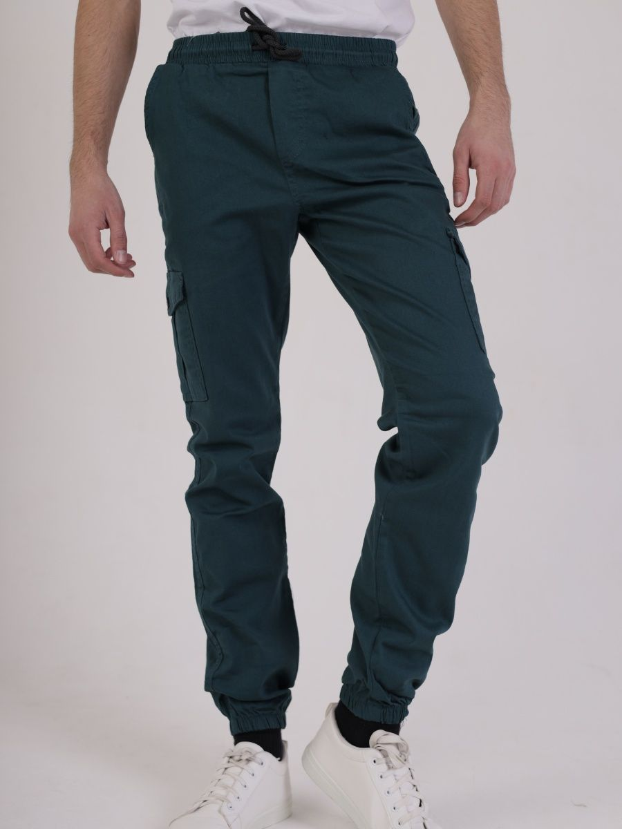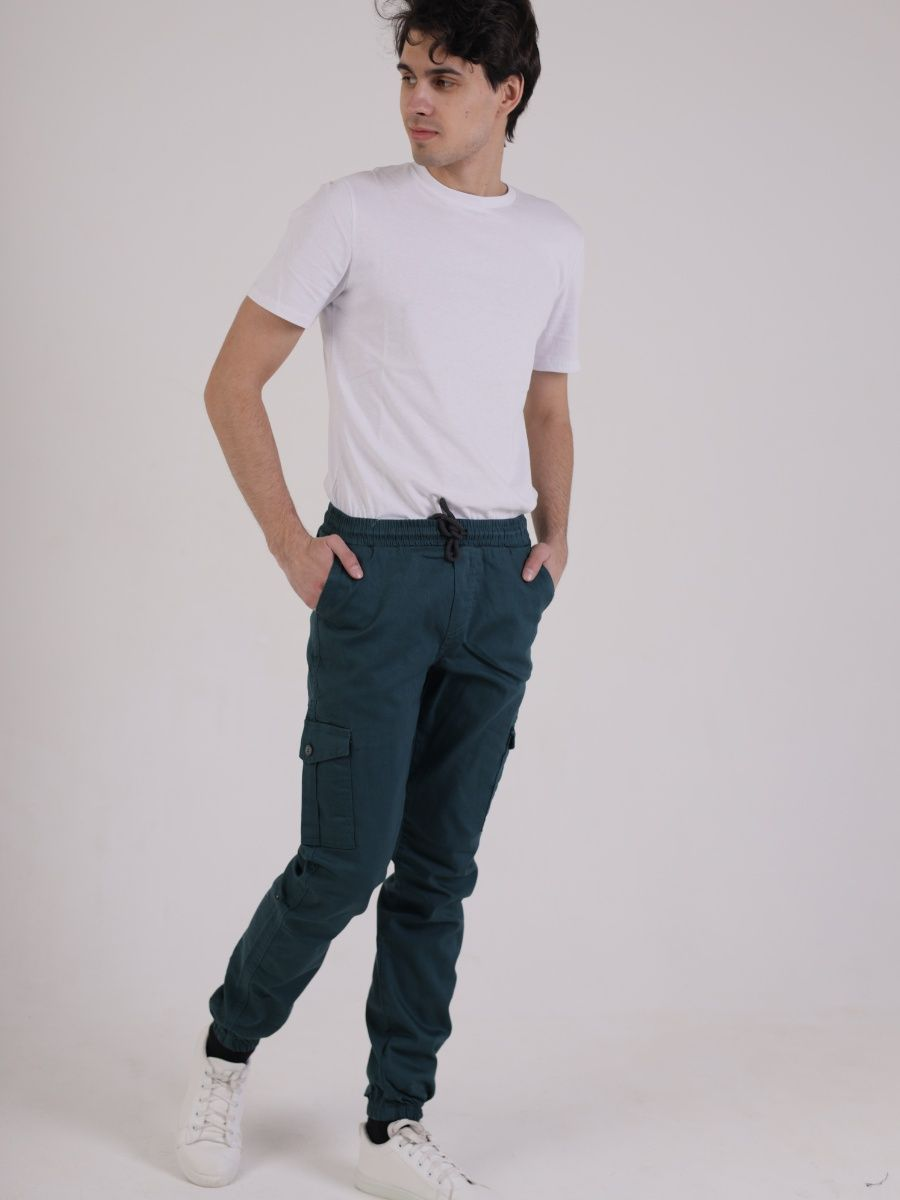 Брюки джоггеры мужские представлены в бирюзовом цвете. Джоггеры удачная модель объединившая спортивный стиль с городским. Штаны стильно смотрятся и хорошо сочетаются с футболками, куртками, рубашками. Отлично вписываются у каждого мужчины, женщины, подростка в гардеробе. Материал джоггеров состоит из 97% хлопка, 3% полиэстер. Для различных аксессуаров предусмотрено 6 карманов: 2 прорезных, 2 накладных на бедрах, 2 накладных задних кармана. Все карманы глубокие и функциональные и ими удобно пользоваться. Отличительная черта этих спортивных штанов является резинка на талии, а также манжеты на щиколотках в виде резинки. Благодаря резинкам при необходимости брюки можно легко поднять. Брюки удобно носить с высокими берцами, кроссовками, мокасинами. Коллекцию карго джогерров весна-лето можно увидеть не только на стадионах и в спорт залах, но и на улицах и даже в офисах.