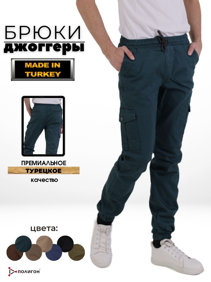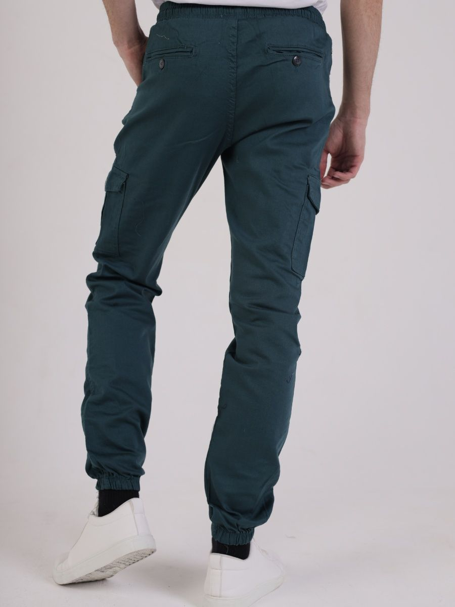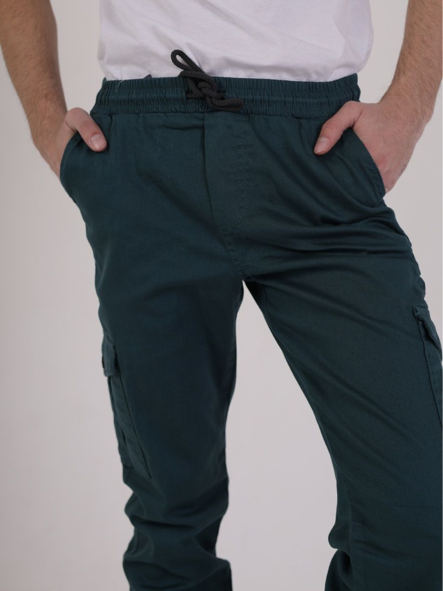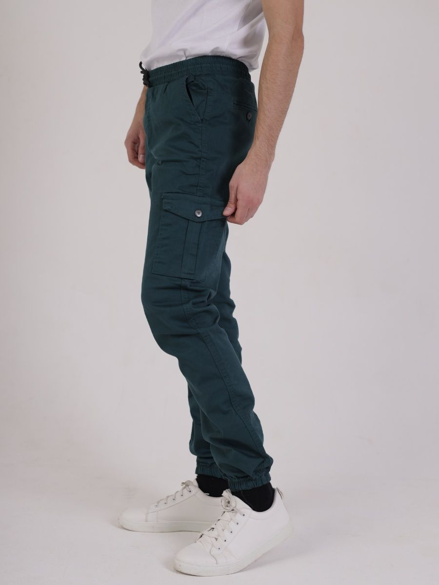 Брюки джоггеры мужские представлены в бирюзовом цвете. Джоггеры удачная модель объединившая спортивный стиль с городским. Штаны стильно смотрятся и хорошо сочетаются с футболками, куртками, рубашками. Отлично вписываются у каждого мужчины, женщины, подростка в гардеробе. Материал джоггеров состоит из 97% хлопка, 3% полиэстер. Для различных аксессуаров предусмотрено 6 карманов: 2 прорезных, 2 накладных на бедрах, 2 накладных задних кармана. Все карманы глубокие и функциональные и ими удобно пользоваться. Отличительная черта этих спортивных штанов является резинка на талии, а также манжеты на щиколотках в виде резинки. Благодаря резинкам при необходимости брюки можно легко поднять. Брюки удобно носить с высокими берцами, кроссовками, мокасинами. Коллекцию карго джогерров весна-лето можно увидеть не только на стадионах и в спорт залах, но и на улицах и даже в офисах.