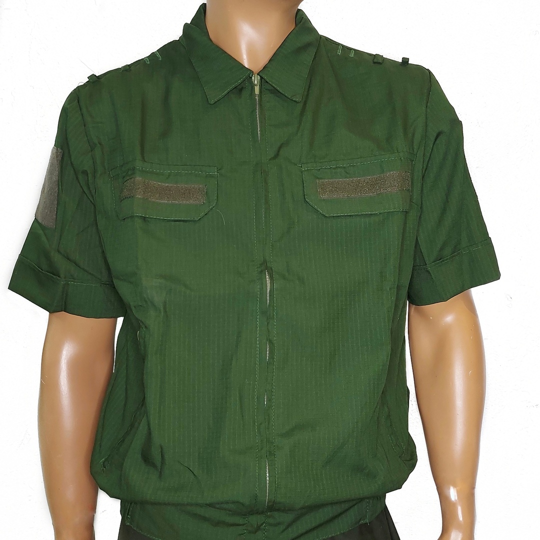 Китель: застегивается на молнию, рубашечный воротник типа "акула", Укороченный руав с манжетом. Имеются два кармана на липучках спереди и врезные карманы по бокам на молнии. Пояс кителя утянут широкой резинкой.