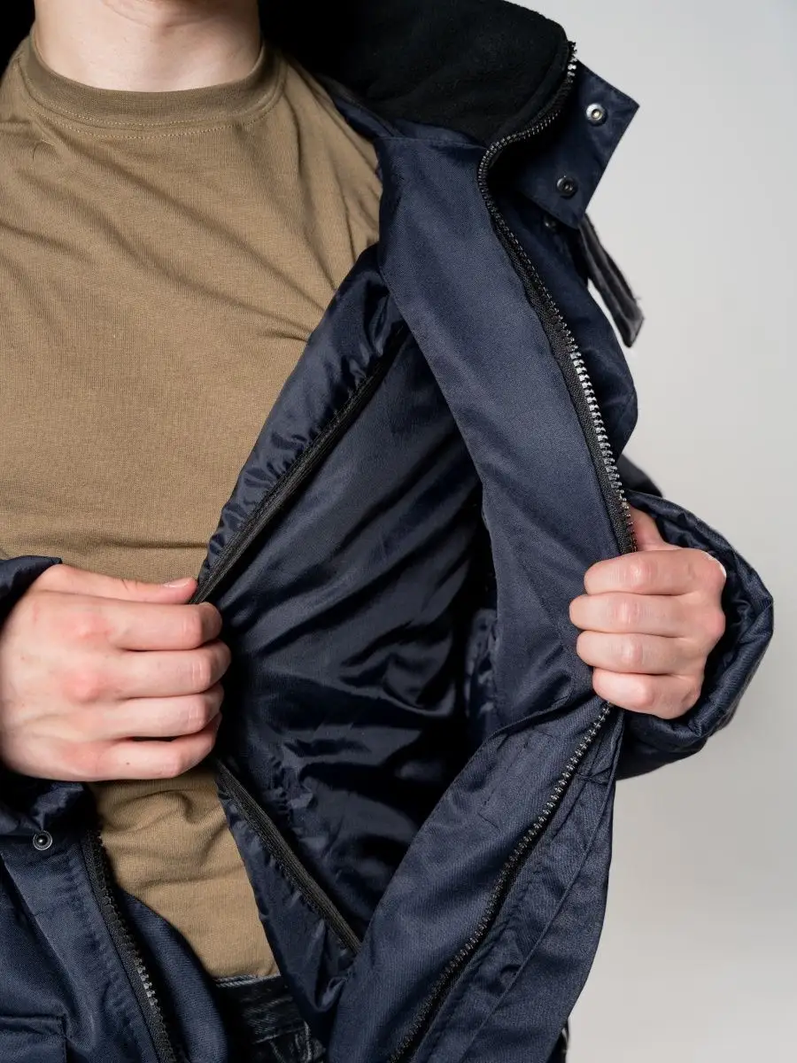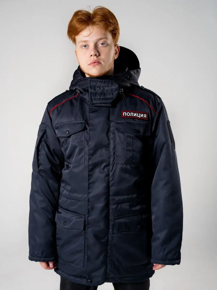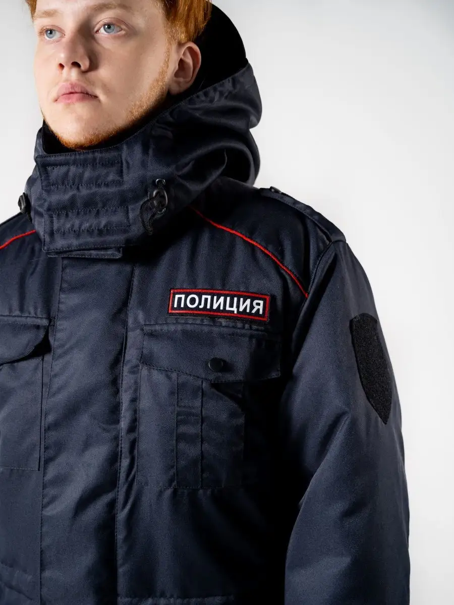 Бушлат уставной ПОЛИЦИЯ ткань рип-стоп, на мембране. Куртка не ограничивает движений, надежно защищает от холода, предназначена для ношения в зимнее время года сотрудниками полиции. Центральная застежка на молнии, закрытой ветрозащитным клапаном. В области плечевых швов расположены погоны на кнопках с съемными фальшпогонами для крепления знаков различия. Два нагрудных накладных кармана на кнопках. Два нижних накладных кармана на кнопках. Над нагрудным карманом и на спине вышивка ПОЛИЦИЯ. Подклад отстегивается, утеплитель бушлата надежно удерживает тепло, не впитывает влагу. Благодаря особенностям материала намокший бушлат очень быстро высыхает.