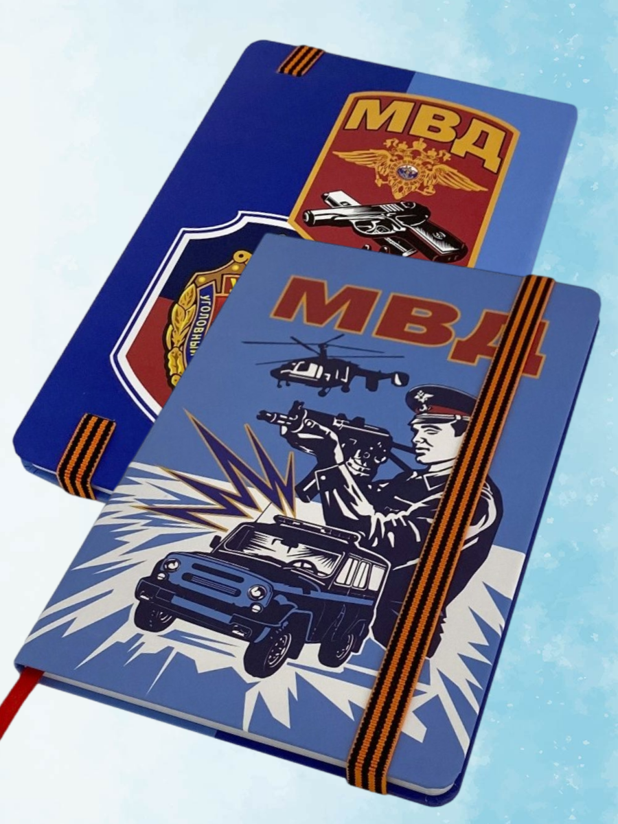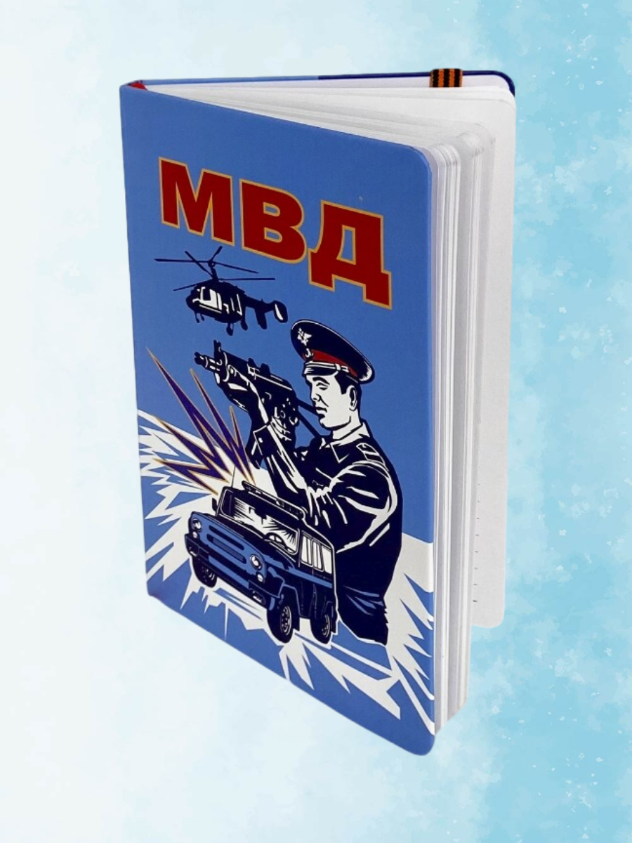 Ежедневник (бумажная продукция) с рисунком МВД Канцелярия для записей в блокноте. Блокнот-книжка линованный сшит с боку скобами-книжкой.