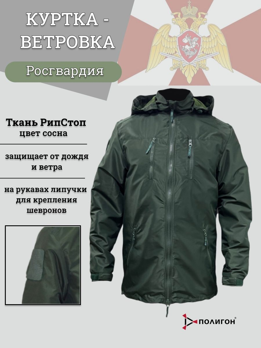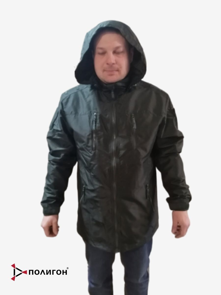 Куртка-ветровка прямого силуэта на разъемной молнии, переходящей в воротник-стойку. По низу куртку-ветровку можно отрегулировать по объему. Манжеты рукавов застегиваются на текстильную застежку (липучку). Куртка и капюшон на подкладе из сетчатого трикотажного полотна. Капюшон регулируется и отстегивается.