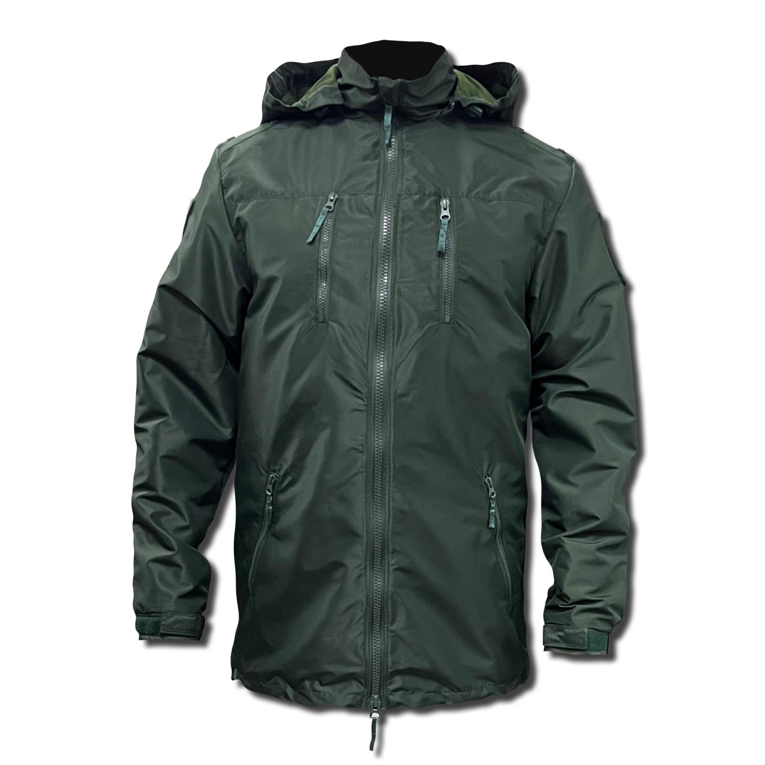 Карманы: 2 нагрудных и 2 боковых кармана на разъемной молнии, один внутренний — на пуговице.